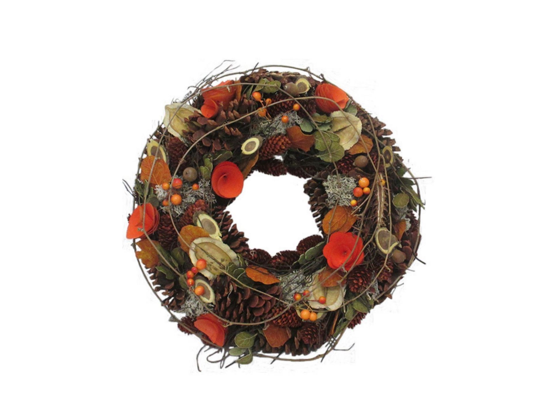 A natural-style decorative wreath, ideal for seasonal displays.
