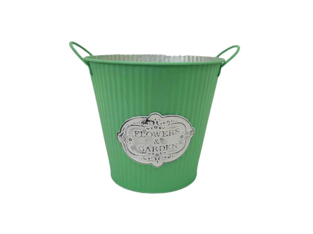 Durable, decorative tin planter with embossed ‘Flowers & Garden’ motif designed to add value to plant displays.