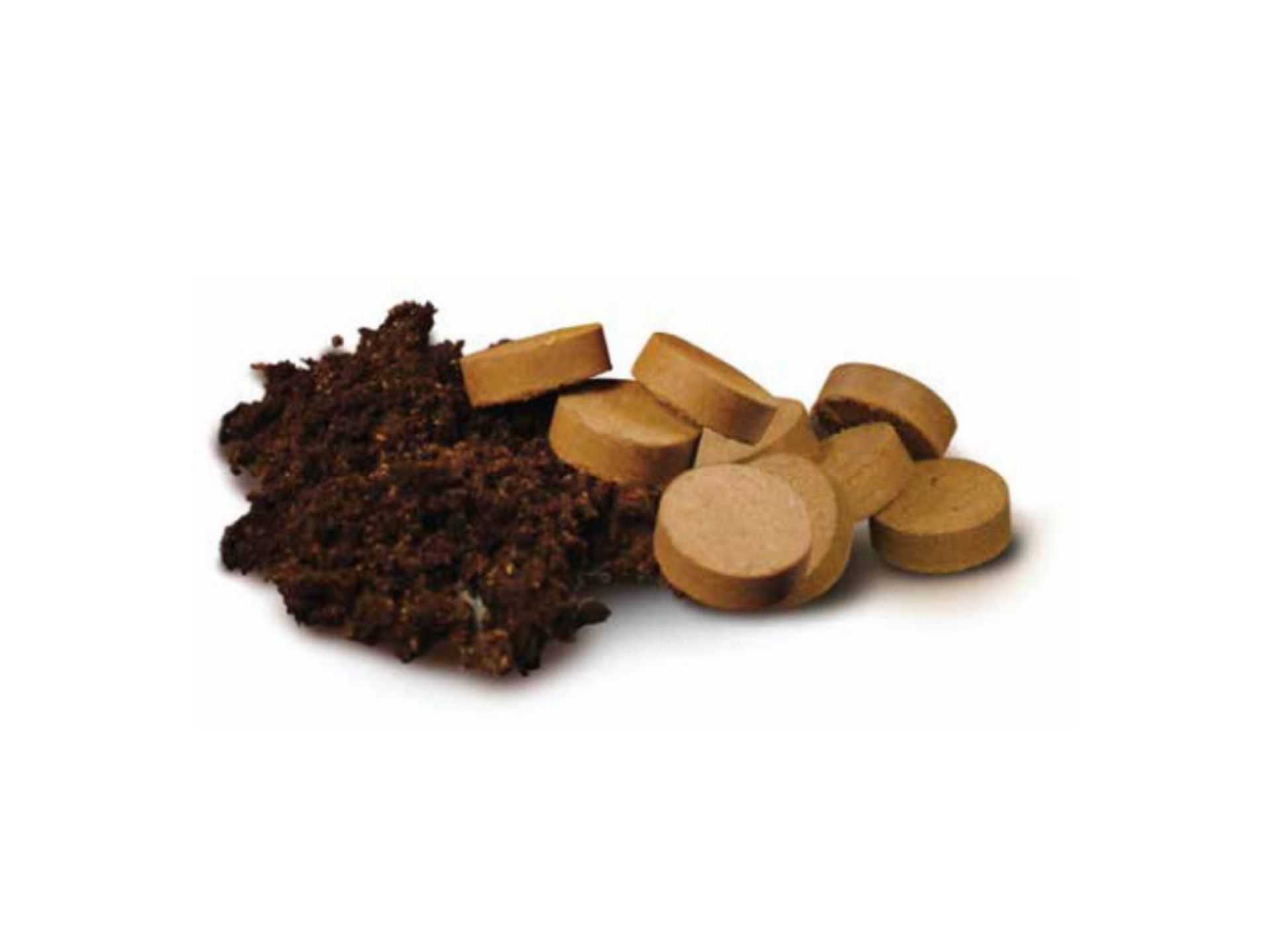 • Each pellet is enclosed in a fine biodegradable netting and compressed for easy handling and storage