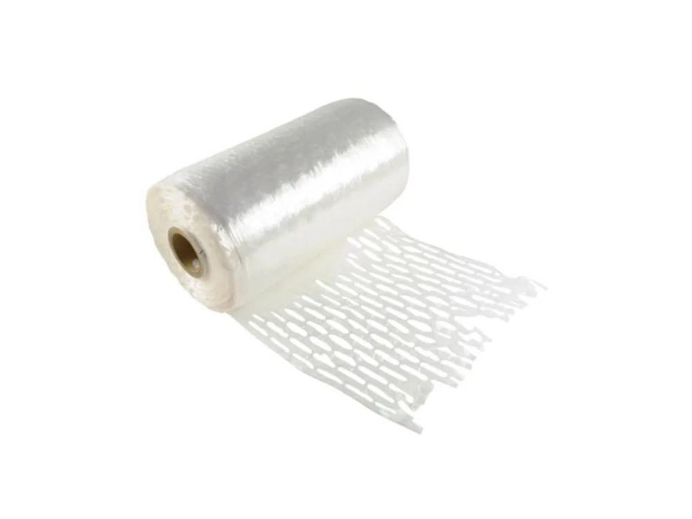 Extended core pallet wrap in clear, designed to cover pallet contents and keep them secure.